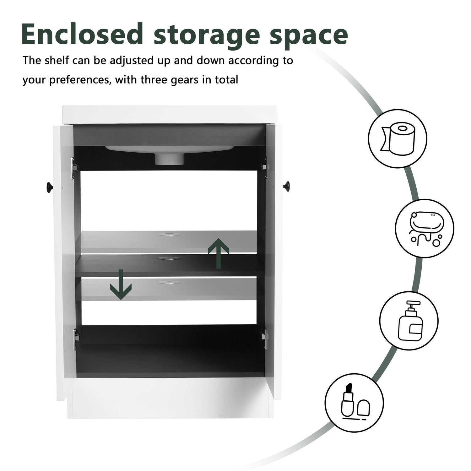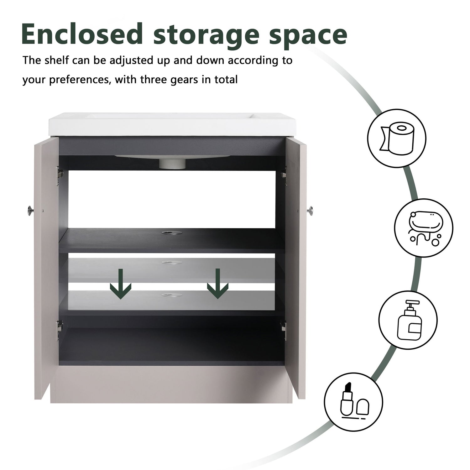 Contemporary Freestanding Bathroom Vanity With White Resin Sink & Soft Close Doors - Dark Green