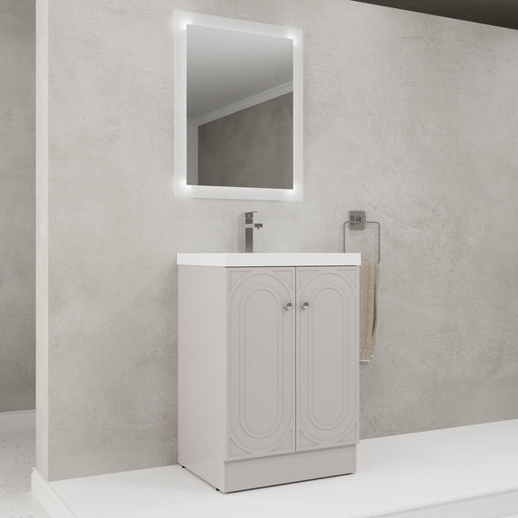 Modern Freestanding Bathroom Vanity With White Resin Sink & Soft Close Doors - Khaki