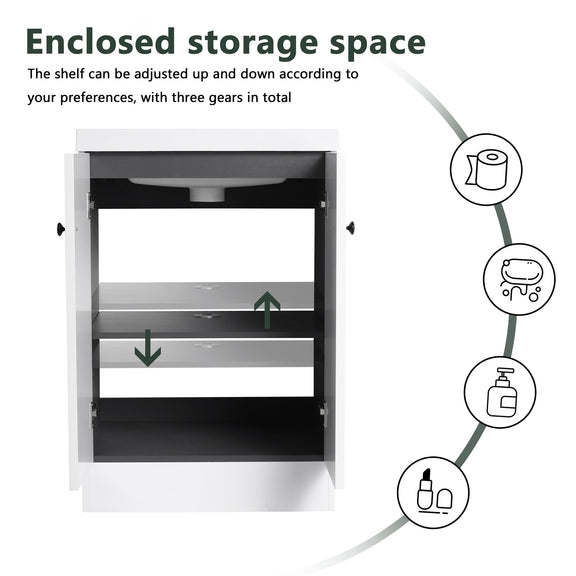 Modern Freestanding Bathroom Vanity With Resin Sink & Soft Close Cabinet Doors, Durable - White