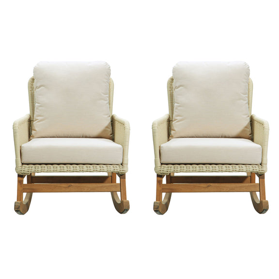 Contemporary Minimalist Wicker Rocking Chair Set With Soft Polyester Cushions And Durable Wooden Frame For Indoor And Outdoor Spaces - Ivory