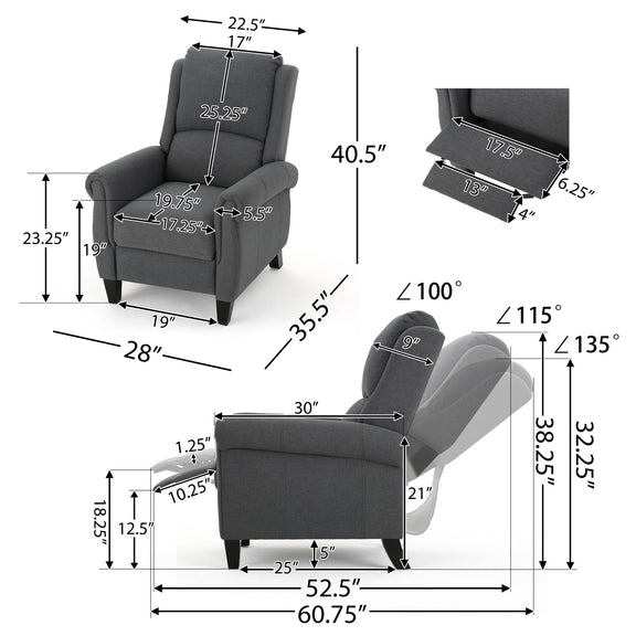 Polyester Recliner With Clean Design And Classic Lines - Charcoal
