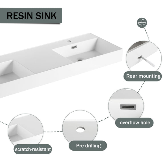- Easy Installation: Pre-assembled vanity base; requires sink installation on a solid wall.