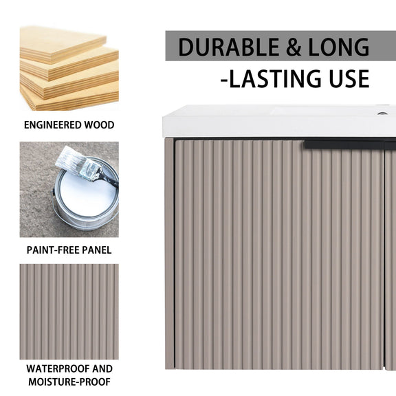 Contemporary Wall Mounted Bathroom Vanity With Resin Sink, Soft Close Doors - Khaki