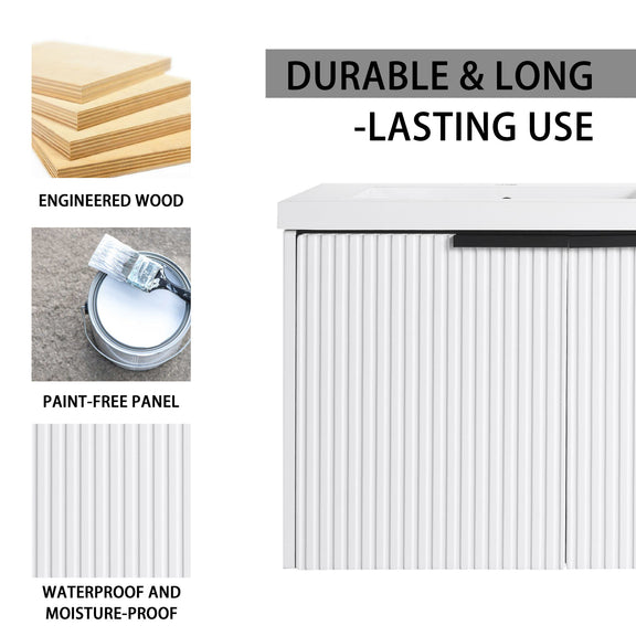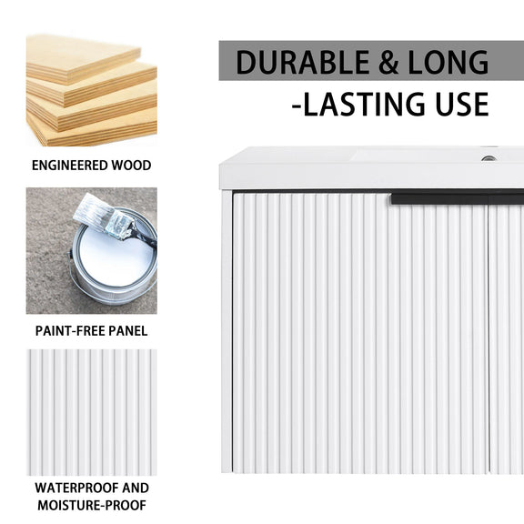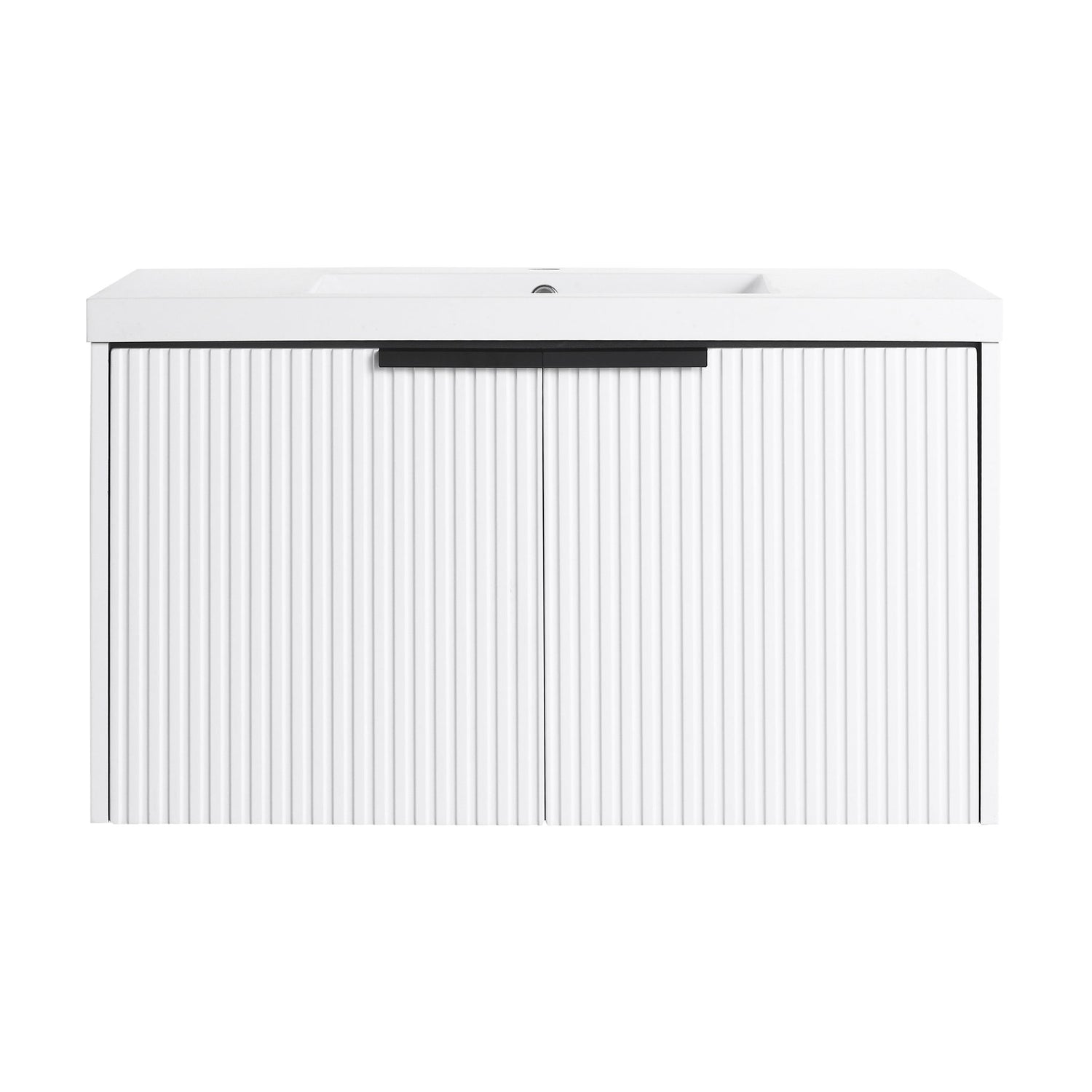 Contemporary Wall Mounted Bathroom Vanity With Resin Sink & Soft Close Doors - White