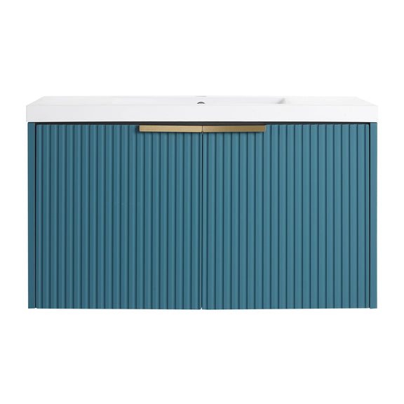 Contemporary Wall Mounted Bathroom Vanity With Resin Sink & Soft Close Doorі - Lake Blue