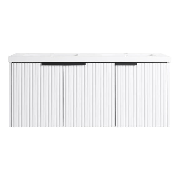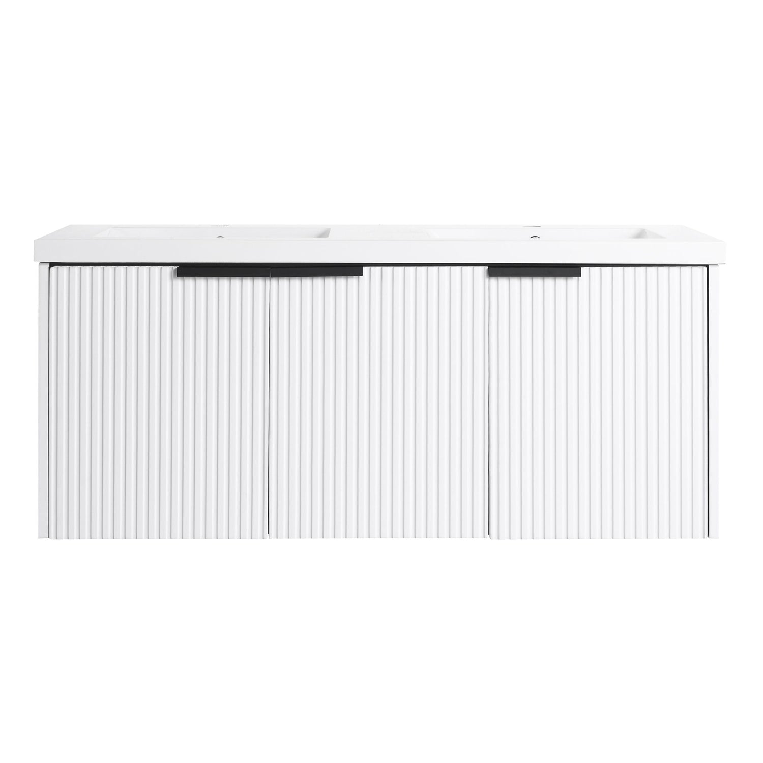 Contemporary Wall Mounted Bathroom Vanity With Resin Double Sink & Soft Close Doors - White