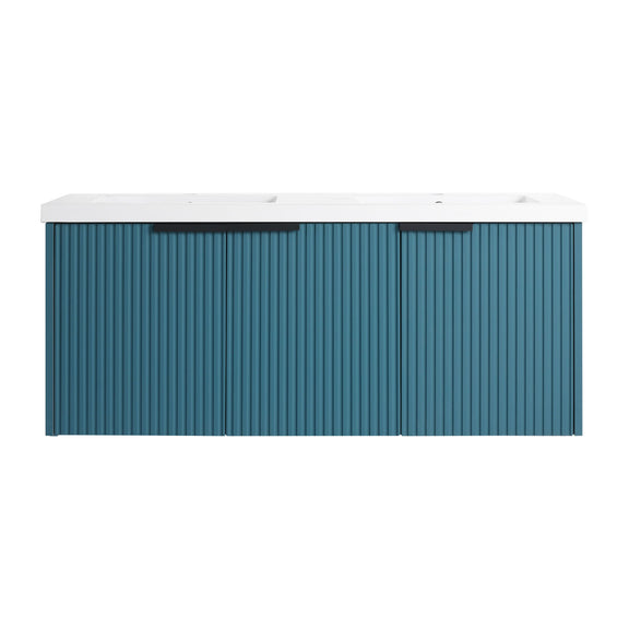 Contemporary Wall Mounted Bathroom Vanity With Resin Double Sink - Lake Blue