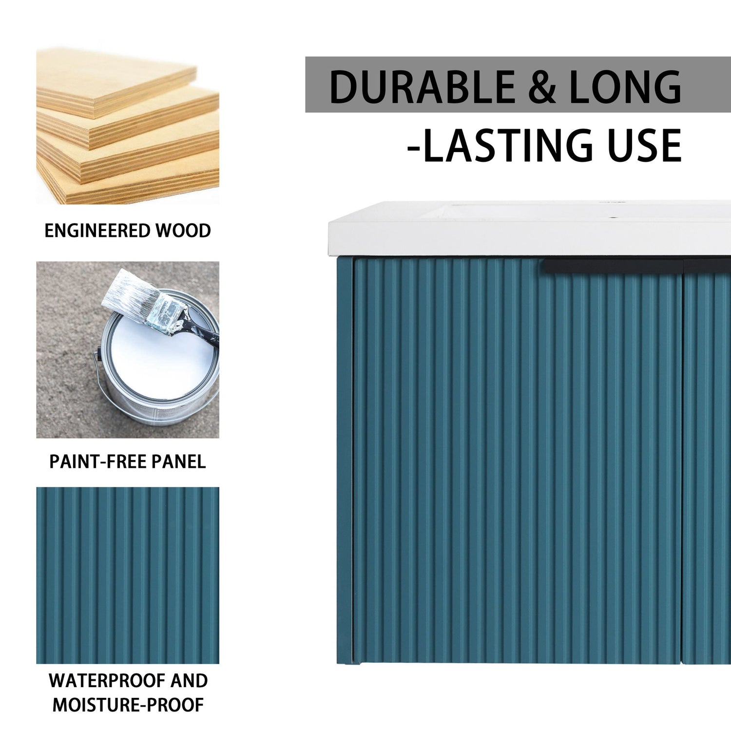 Contemporary Wall Mounted Bathroom Vanity With 3 Soft Close Doors - Lake Blue