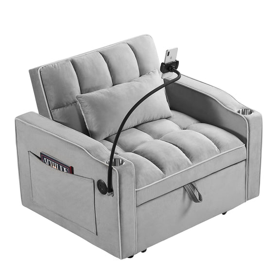 Convertible Sleeper Chair Sofa Bed Adjustable Pull Out Sleeper Chair Bed Multi-Pockets Folding Sofa Bed For Living Room Bedroom Small Space, 3 In 1 Sofa Bed - Gray