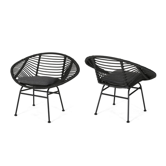 Cordella - Outdoor Woven Wicker Chairs With Cushions, (Set of 2) - Gray