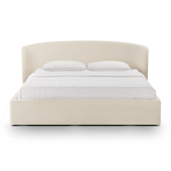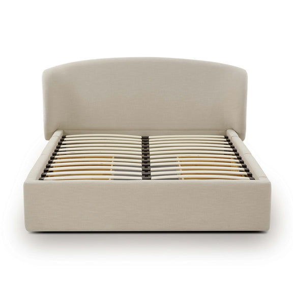 Sustainability gets cozy in the Corey Taupe Storage Bed, crafted from soft, upcycled linen made of reclaimed plastic bottles. With padded sheltering wings and hidden drawers on smooth-glide casters, it's the definition of chic storage and dreamy comfort.