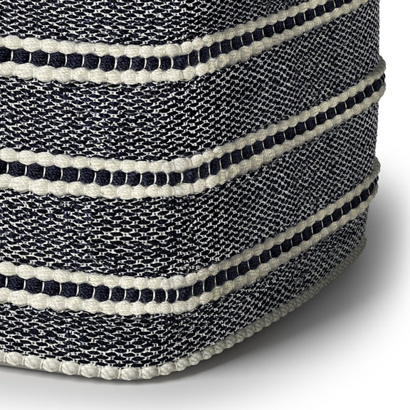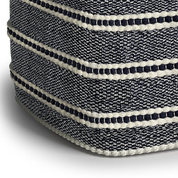 Corrie - Square Woven Outdoor / Indoor Pouf - Navy / White