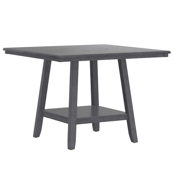 Counter Height Dining Table With Tapered Base And Lazy Susan - Gray