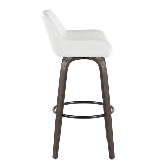Daniella - Contemporary Fixed Height Barstool With Swivel & Round Footrest (Set of 2) - Walnut / White