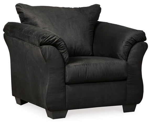 Talk about fine lines and great curves. That's the beauty of this standout chair made to suit your appreciation for simplicity and love of contemporary style. A striking flared frame, comfy pillow top armrests and an ultra-soft upholstery that holds up to everyday living complete this fashion statement.