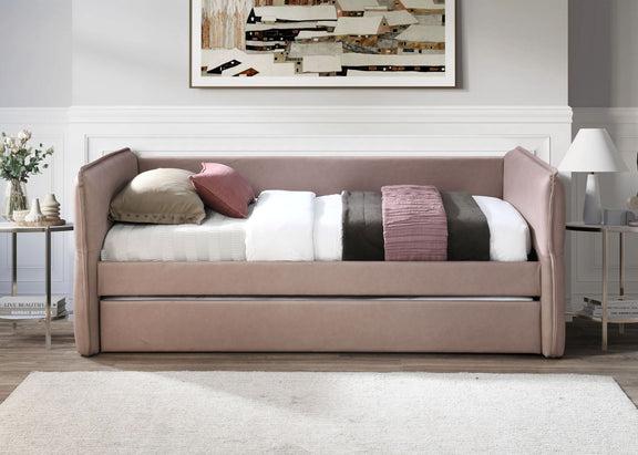 - Stylish Design: This daybed features a chic and modern design, upholstered in a delightful dusty rose hue, adding a touch of elegance to any room decor.