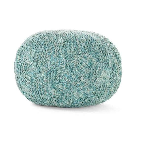 Deon - Knitted Pet Yarn Round Pouf With Classic Cable Knit Design - Aqua