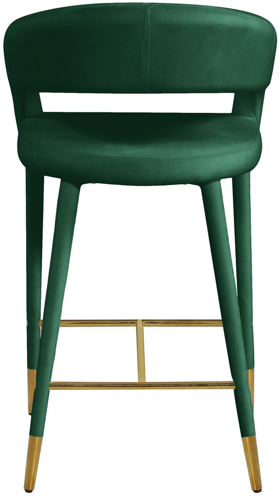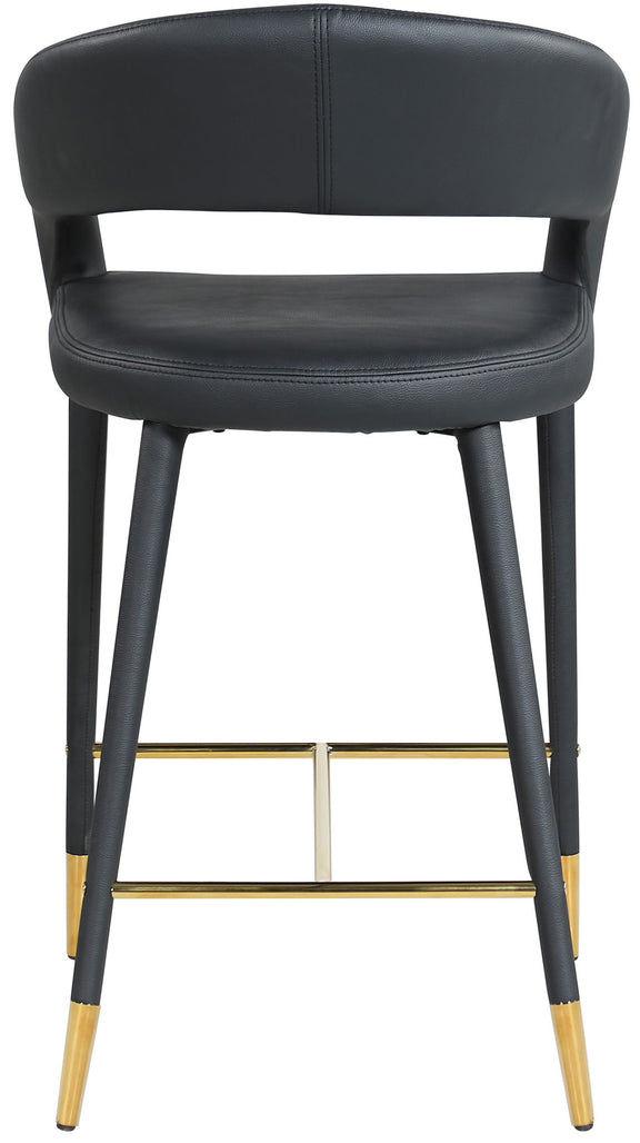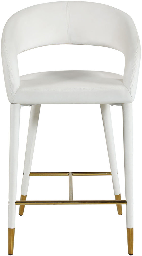 Settle in for a meal with friends seated in this Destiny stool. Soft upholstery makes this stool a sleek and inviting option for pairing with your favorite counter table. The rounded back adds comfort to mealtime and lends the stool a chic, eye-grabbing touch, while tapered legs topped with gold tips give the stool an elegant finish.