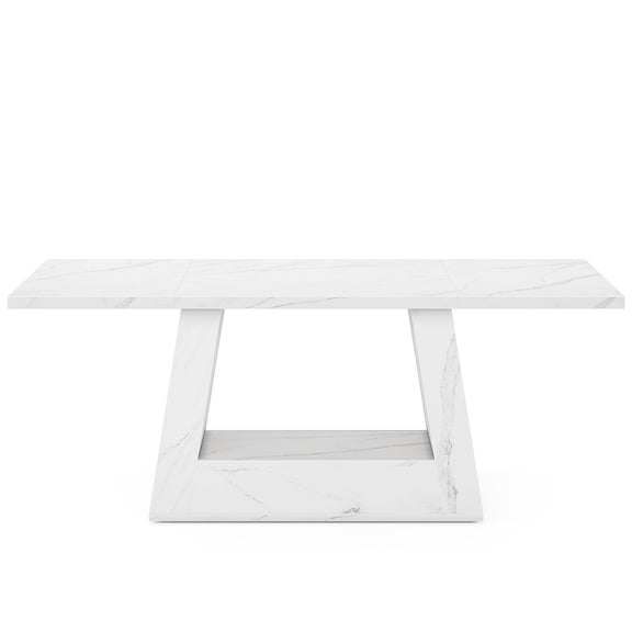 Dining Table For 4 To 6 People, With Trapezoid Base For Dining Room - White