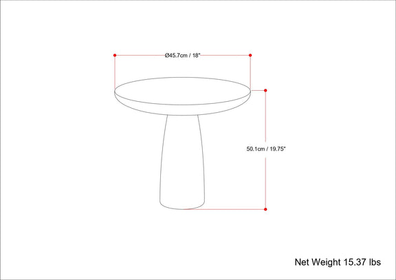 18.0"W x 18.0"D x 19.75"H - 15.4 lb