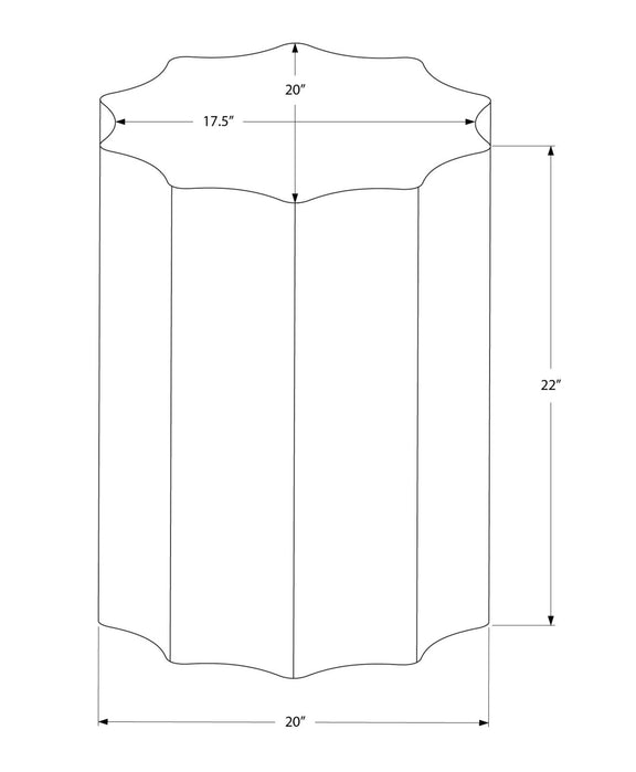 - Design and Finish: This drum table features a stylish scalloped design with a hammered texture, finished in an antique metal. It adds an eye-catching boho glamour to any living room or bedroom setting.