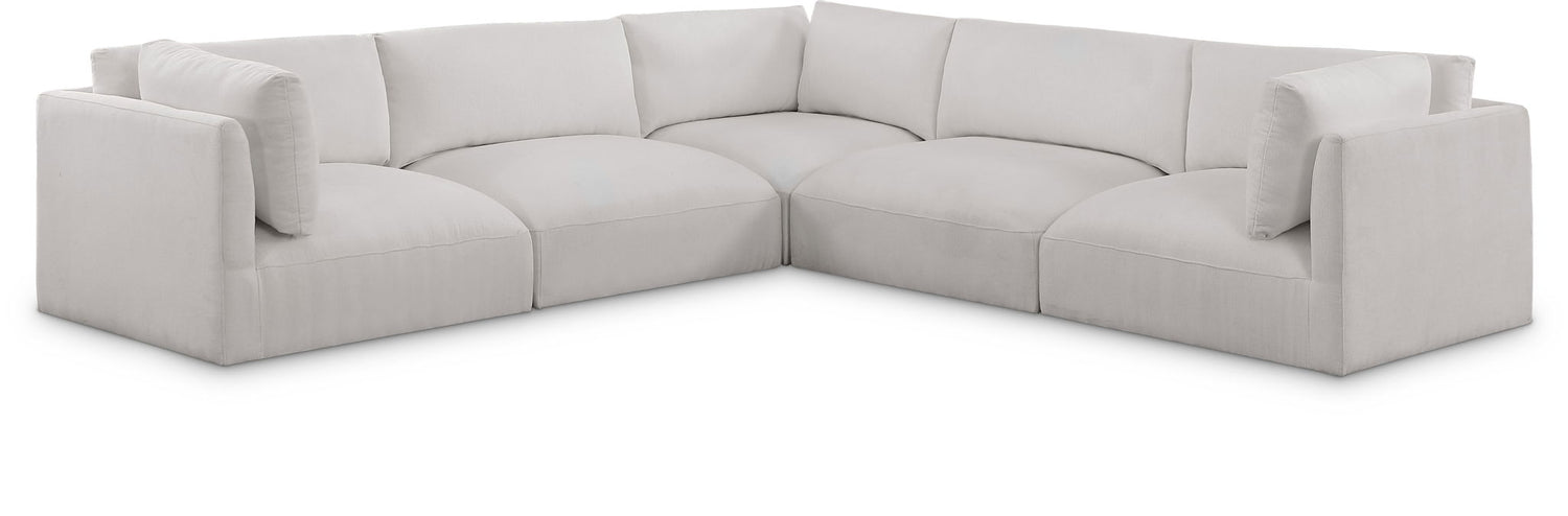 Ease - 5 Piece Modular Corner Armles Sectional - Cream