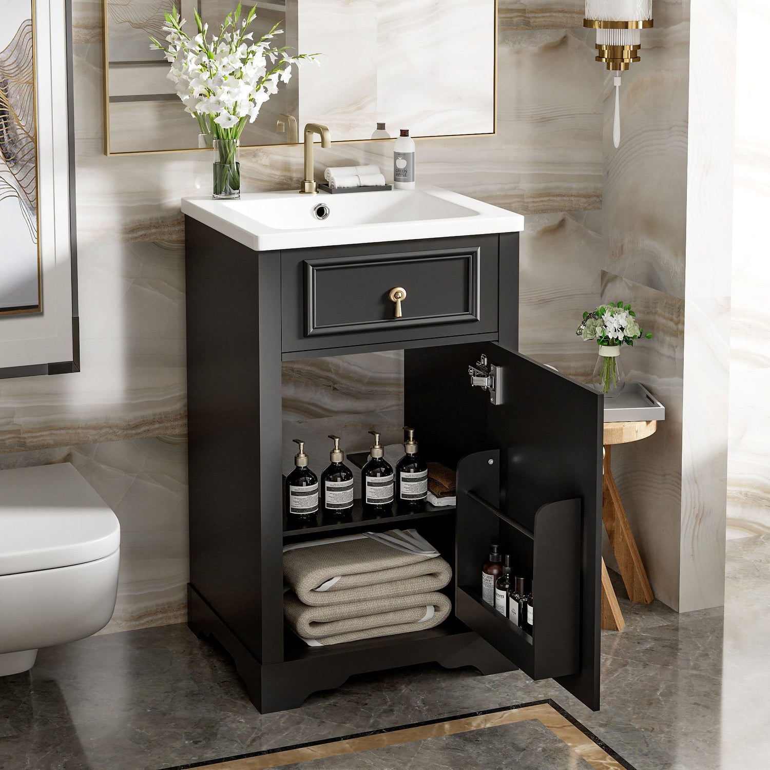 20" Bathroom Vanity With Sink, Soft Close Door, Adjustable Shelf - Black