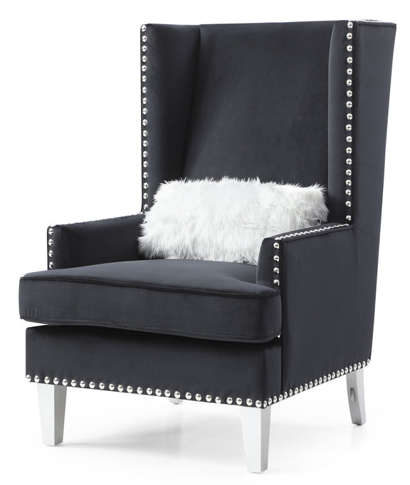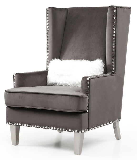 - Hand Applied Nailheads: Contrasting with the velvet cover, the hand applied nailheads add a sophisticated touch to the chair.