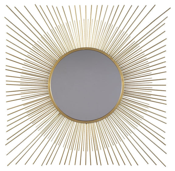 This accent mirror is a contemporary musing. Its breathtaking sunburst design shines in goldtone metal. And the mirror’s beautifully large scale makes it the center of attention.