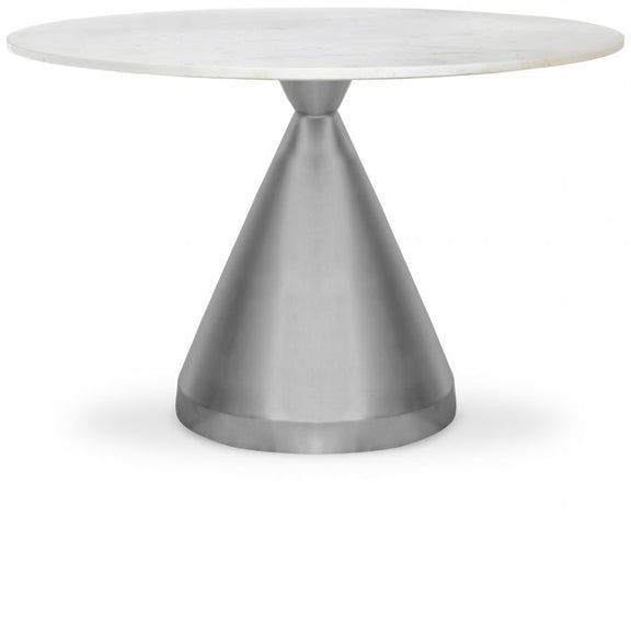 Make an impression when you gather around this Emery dining table. This elegant table blurs the lines between modern and contemporary with elements of timelessness, making it a great fit in your dining room. The metal base is made from stainless steel for lasting good looks and has a brushed silver finish for long-wearing beauty. The top features white marble construction for an up-to-the-minute look that's understated yet elegant.