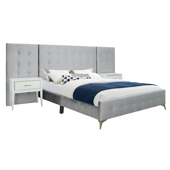 Emma - Queen Bed - Silver Gray With 2 End Tables