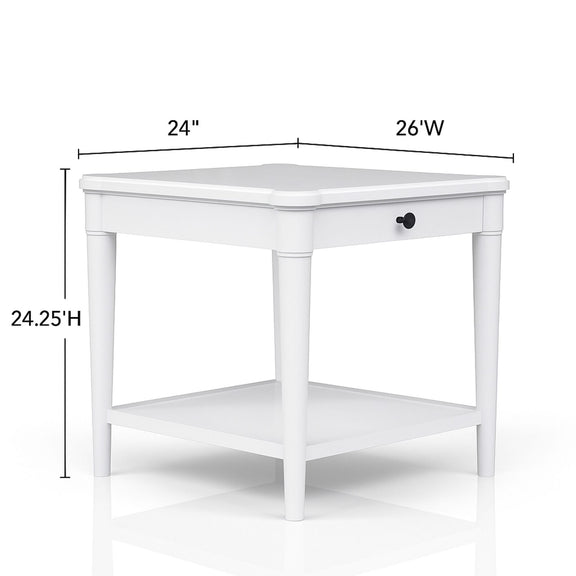 End Table With Storage Drawer - White