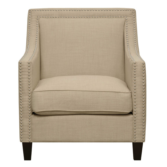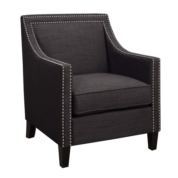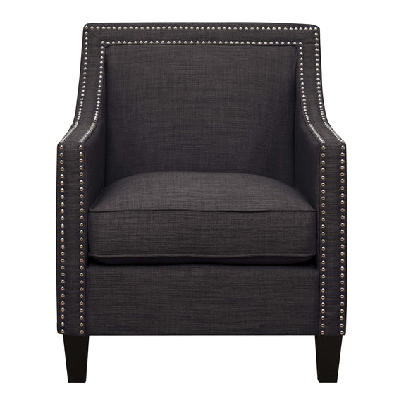 The Erica Chair boasts a refreshing combination of contemporary design with a touch of vintage flare. Its clean lines, low back, and straight edge arms are accented by nail head trim and dressed in a fashionable fabric upholstery.