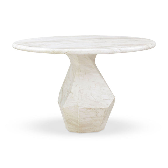 The Esme Faux Marble Table Collection features striking silhouettes that mimic the look of chiseled marble, bringing bold design to any space. With a side table, console, and 48" round dining table to choose from, these versatile pieces are perfect for both indoor and outdoor settings.