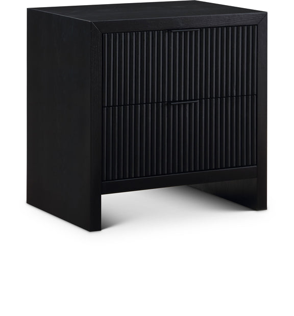 The exquisite Fairfax Night Stand is a perfect blend of style and functionality. The meticulously crafted fluted drawer fronts, with their subtle grooves, lend a touch of sophistication to the piece. The matte black metal handles are not only visually appealing but also easy to grip, making it effortless to open and close the drawers. The night stand is crafted from solid wood, providing a durable and sturdy construction. Its sleek finish enhances its modern and contemporary appeal, making it an exceptional addition to any living space.