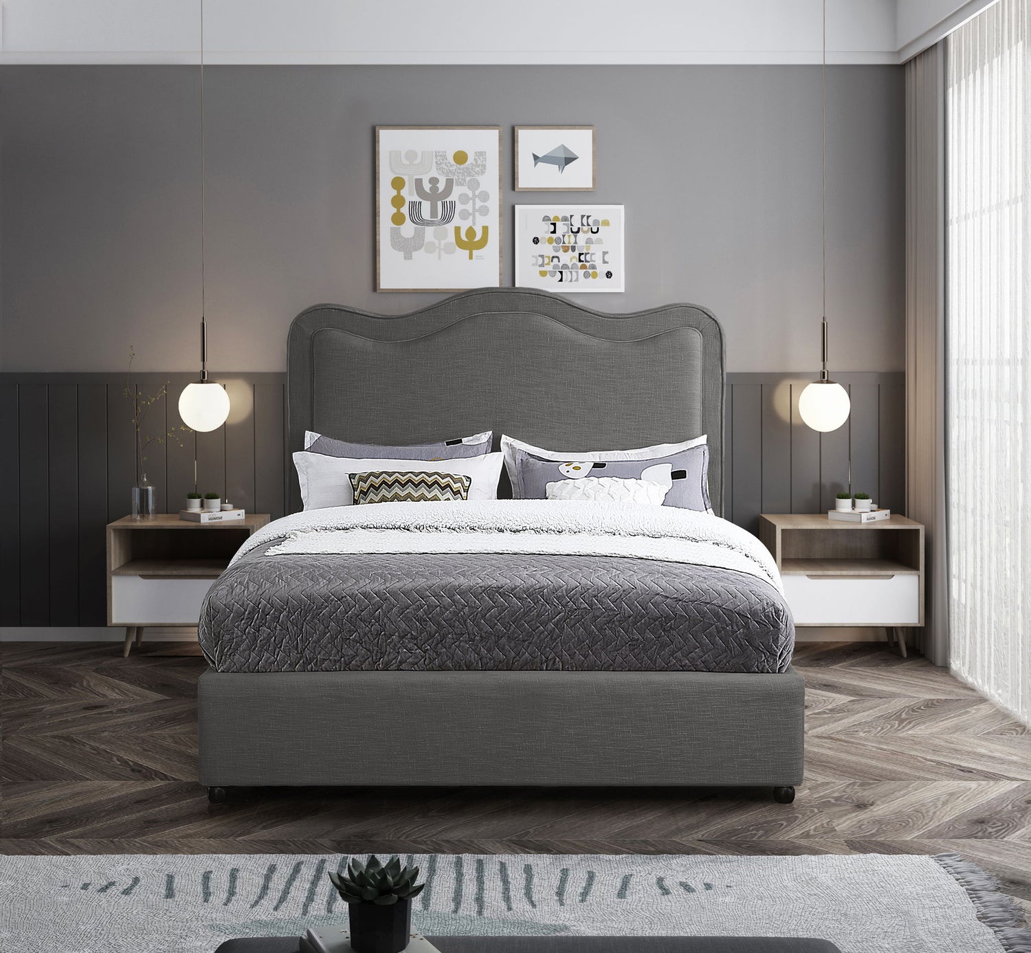 Catch some Z's in style when you're tucked into this Felix linen fabric bed. Rich linen fabric covers nearly every square inch of this fabulous bed, which features a curved headboard that's slightly padded to give you the ideal cozy spot for catching up on your bedtime reading.