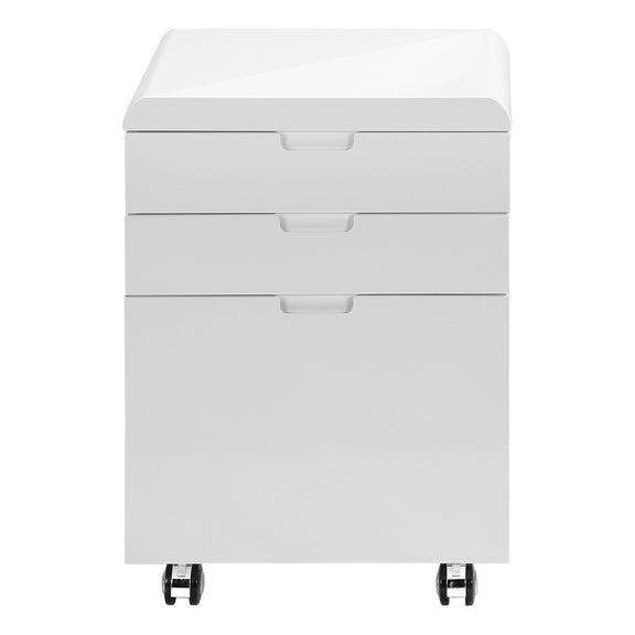 File Cabinet, Rolling Mobile, Storage Drawers, Printer Stand, Office, Work, Glossy Contemporary, Modern - White