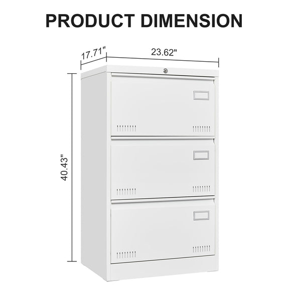 Filing Cabinet Lateral File Cabinet With Lock, 3 Drawer - White