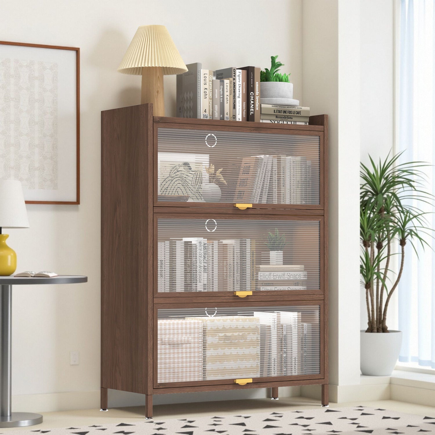 3 Flip Doors Cabinet, With Ample Storage Space For Living Room - Walnut