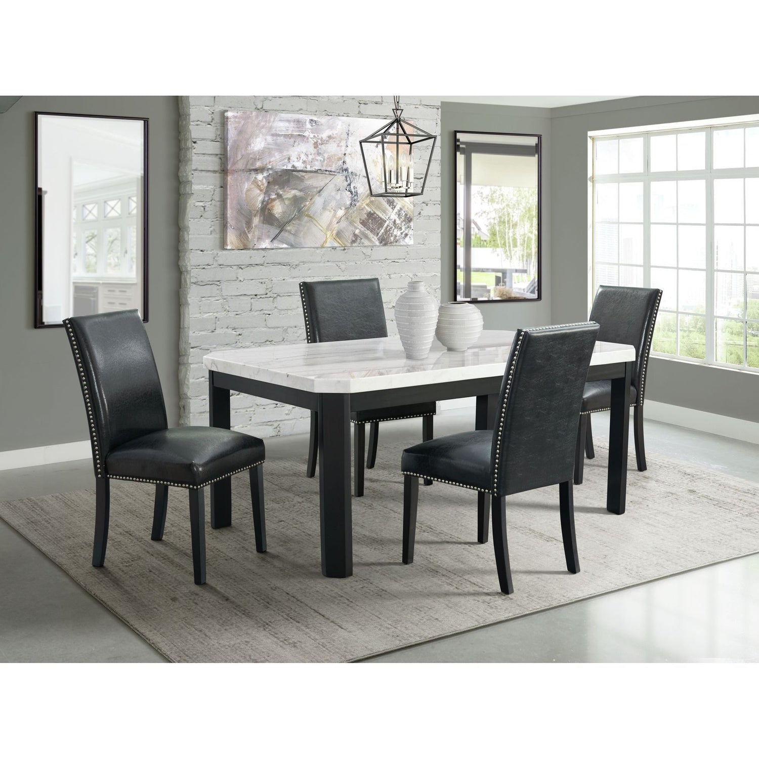 Francesca - 5 Piece Dining Set (Table And Four Faux Leather Chairs) - White Marble / Black