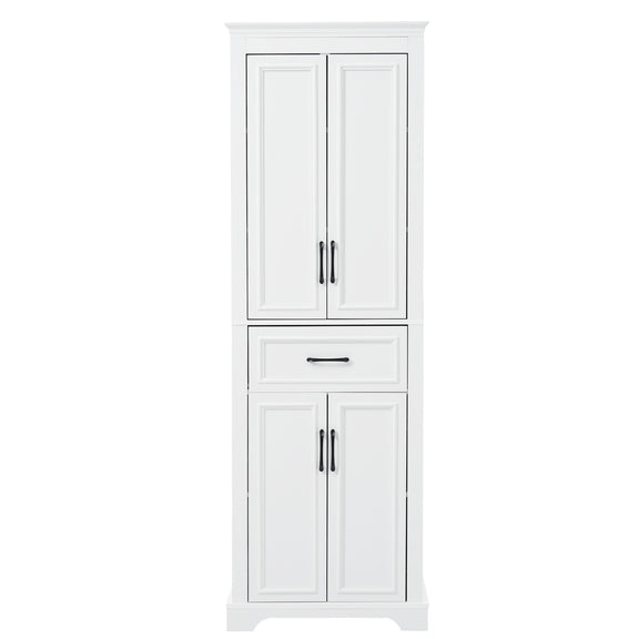 Freestanding Bathroom Vanity, Elegant Design With 4 Doors & 1 Drawer, Adjustable Shelves, Damping Hinges - White