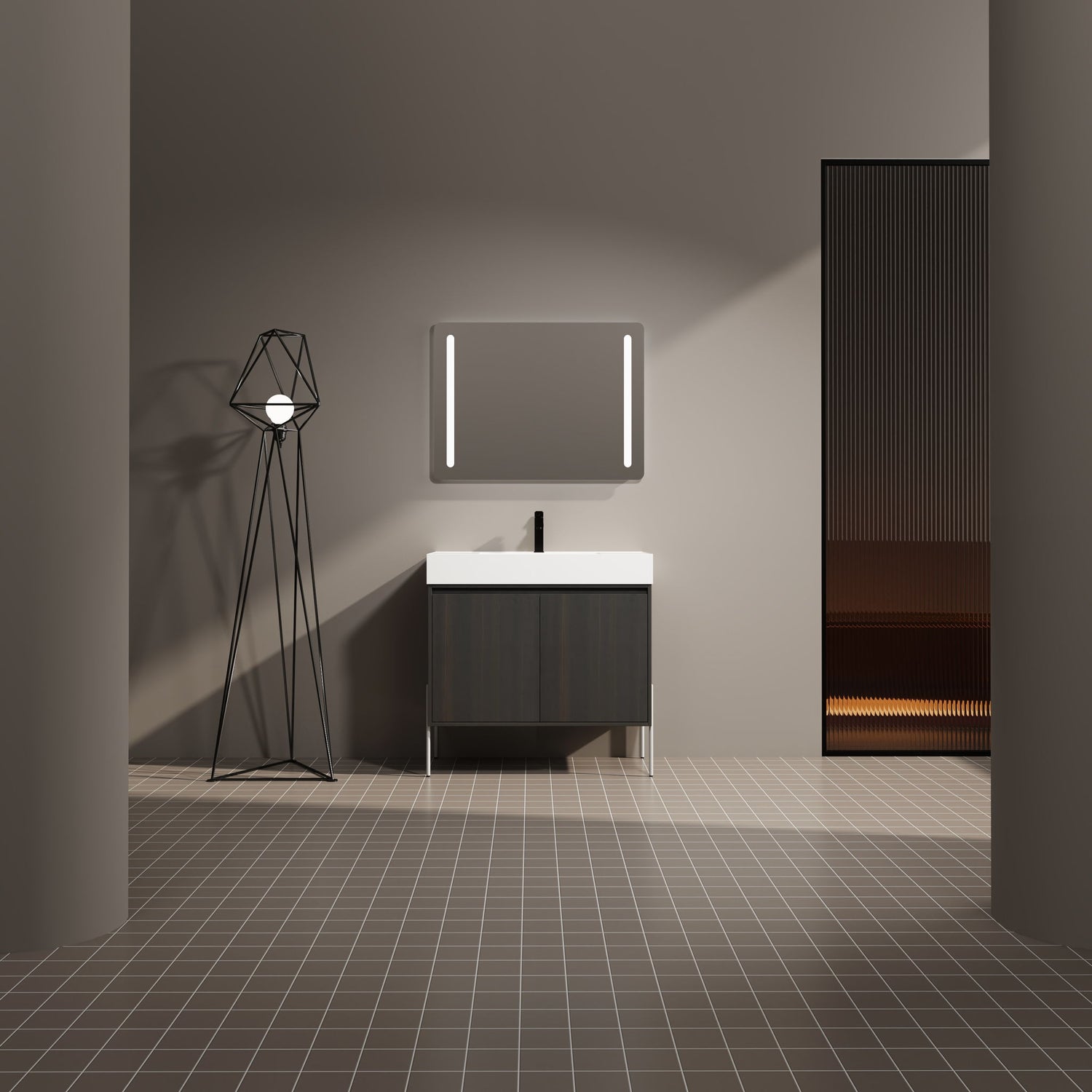 Minimalist 36" Freestanding Bathroom Vanity With Resin Sink And Storage Cabinet - Dark Oak