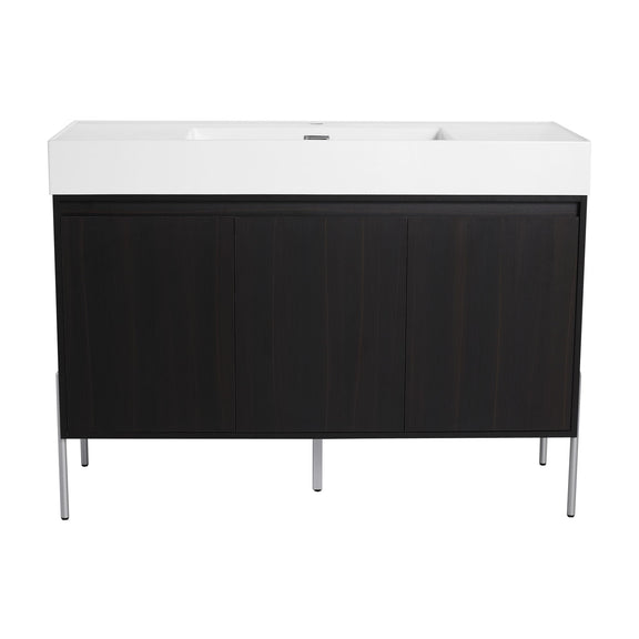 Freestanding Bathroom Vanity With Resin Sink And Storage Cabinet - Dark Oak