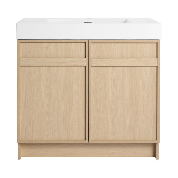 Modern Freestanding Bathroom Vanity With White Resin Sink & Soft Close Cabinet Doors - Oak