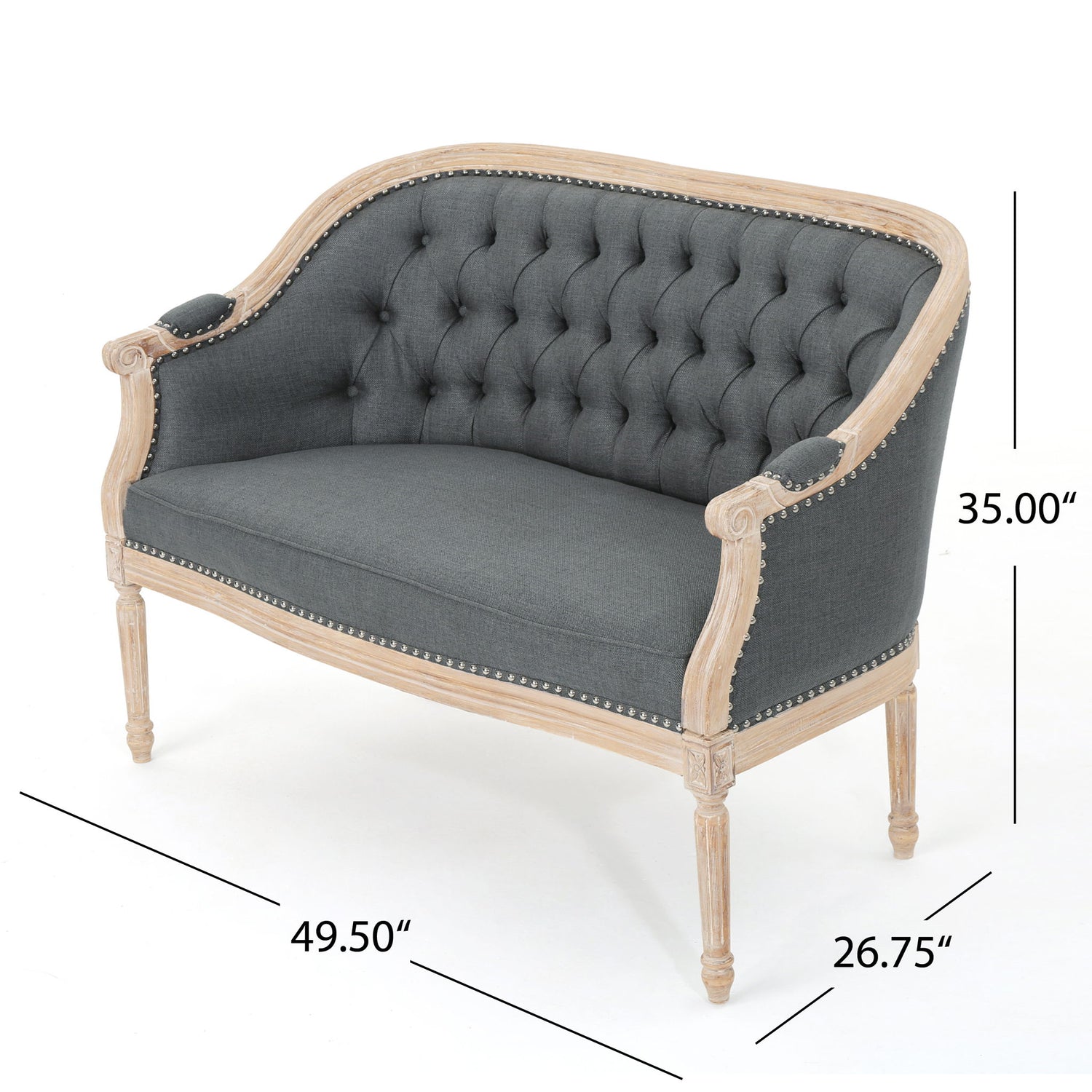 French Country Chesterfield Style Tufted Loveseat - Dark Gray