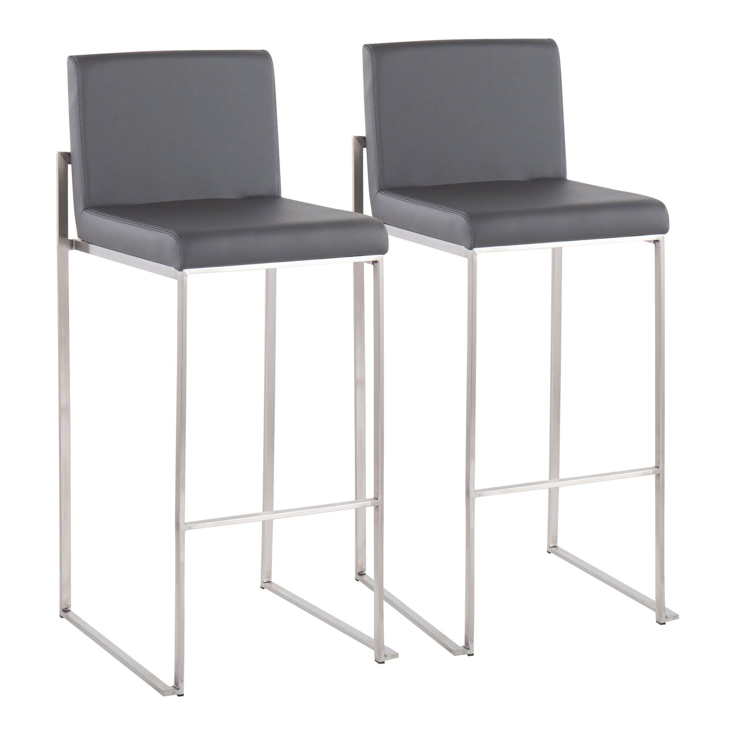 Fuji - Contemporary High Back Barstool (Set of 2) - Gray - Faux Leather