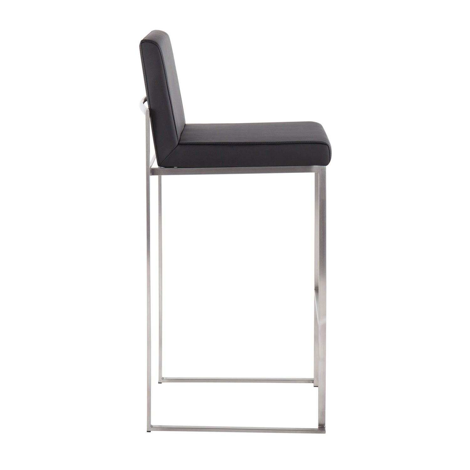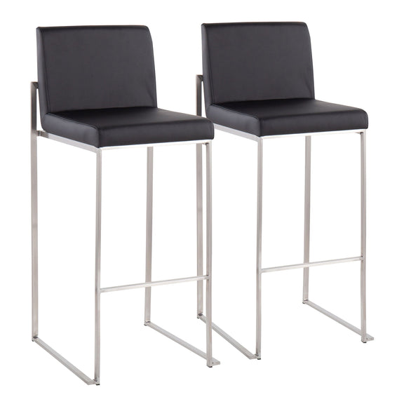 Fuji - Contemporary High Back Barstool (Set of 2) - Black - Faux Leather