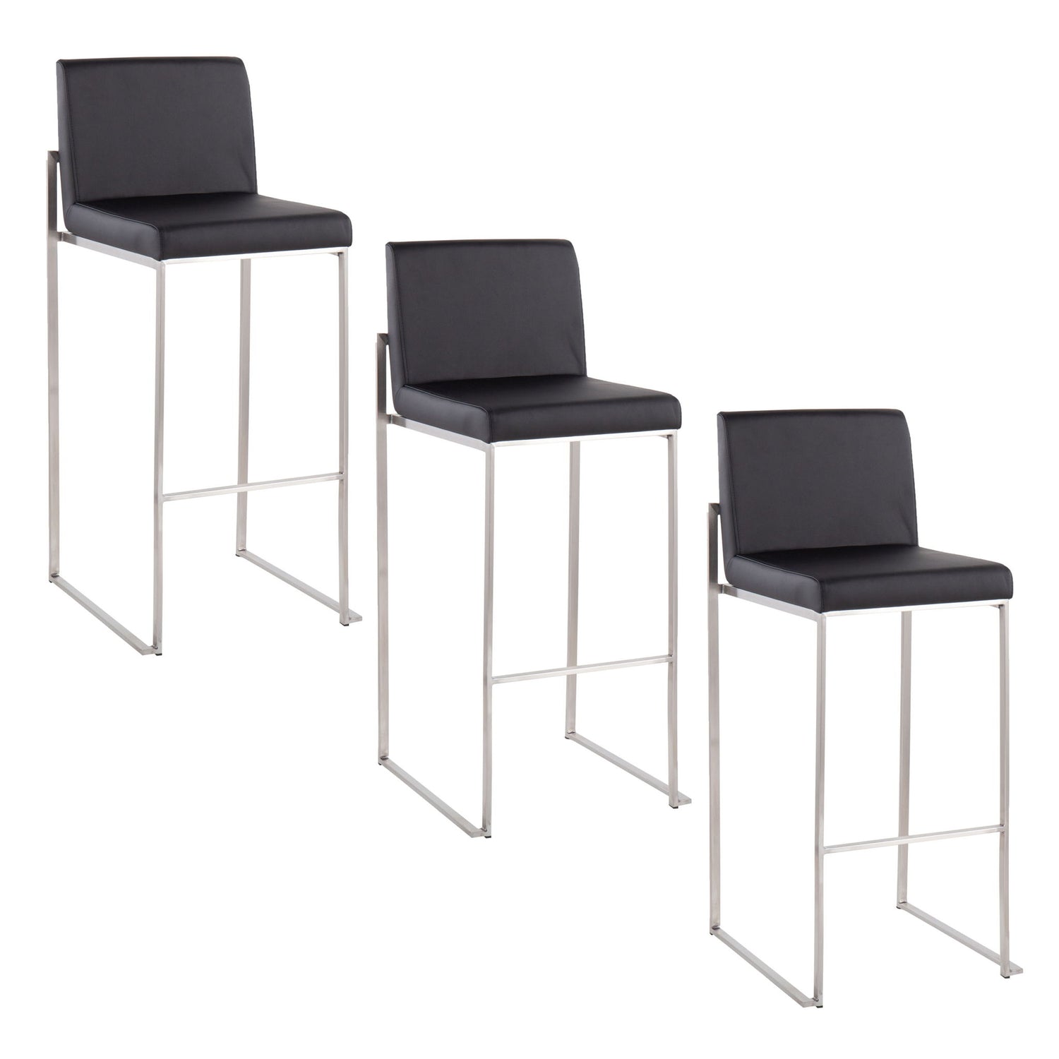 Fuji - Contemporary High Back Barstool (Set of 3) - Black - Faux Leather