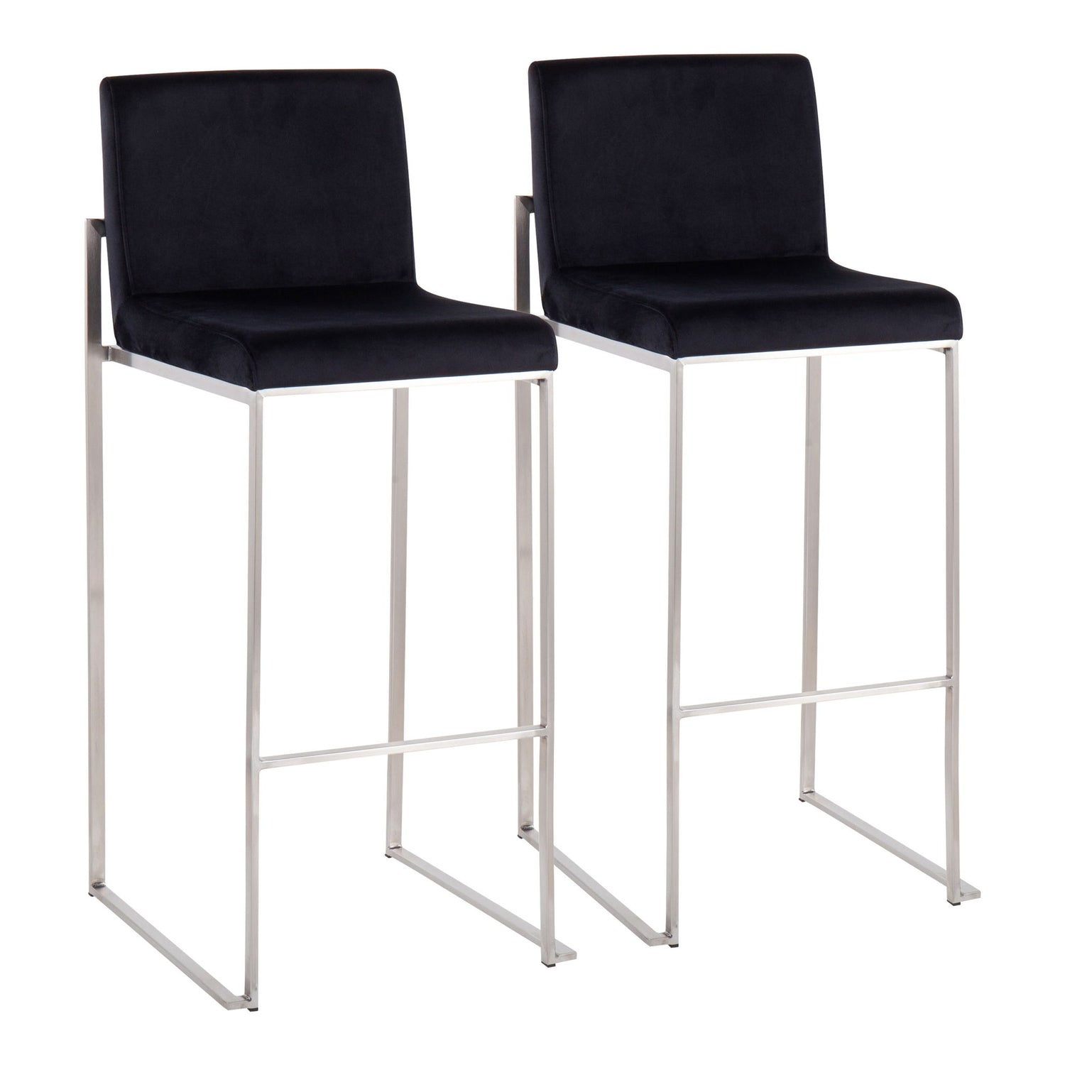 Fuji - Contemporary High Back Barstool (Set of 2) - Black - Velvet