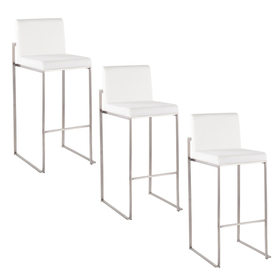 Fuji - Contemporary High Back Barstool (Set of 3) - White - Faux Leather